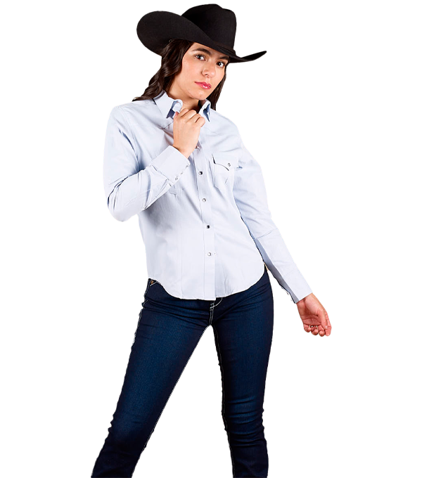 BLUSA VAQUERA DE DAMA LISA AZUL TELA MAQUINILLA