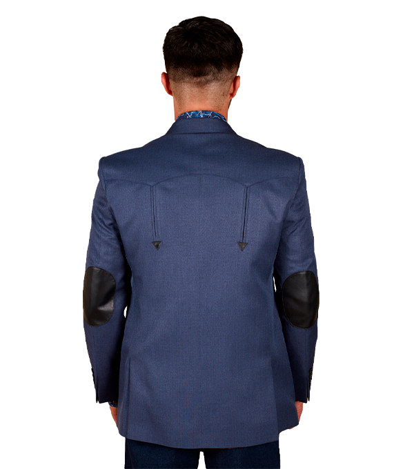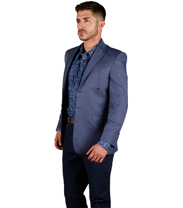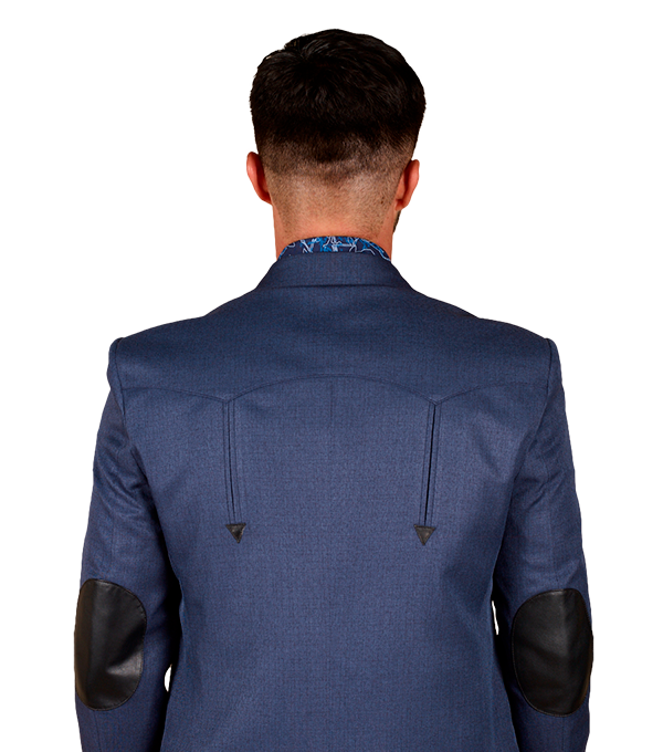 SACO VAQUERO DE CABALLERO TELA TOLEDO AZUL PIZARRA DOBLE ABERTURA CON CODERAS 100% PIEL