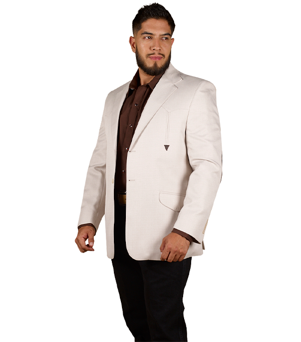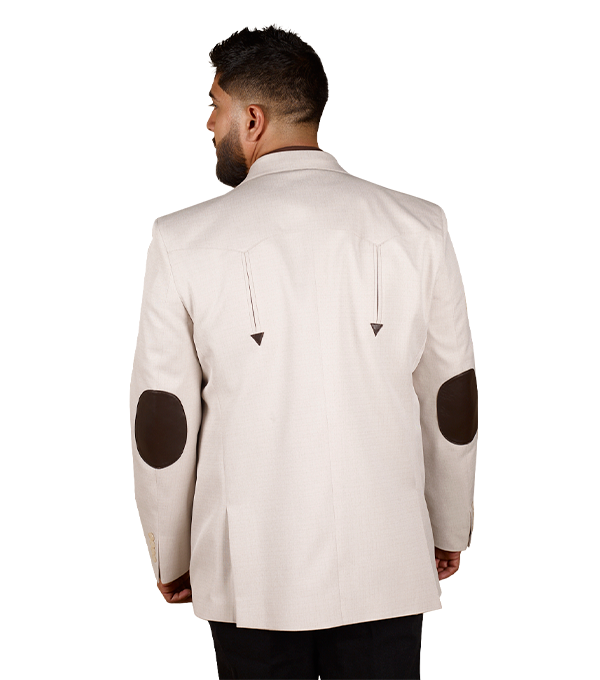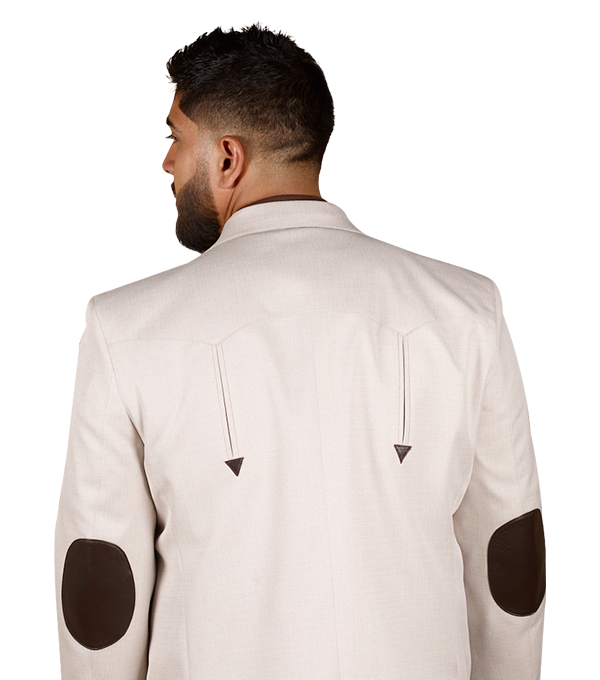 SACO VAQUERO DE CABALLERO TELA TOLEDO BEIGE DOBLE ABERTURA CON CODERAS 100% PIEL