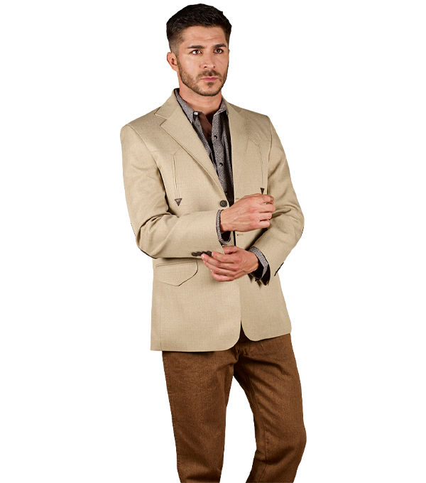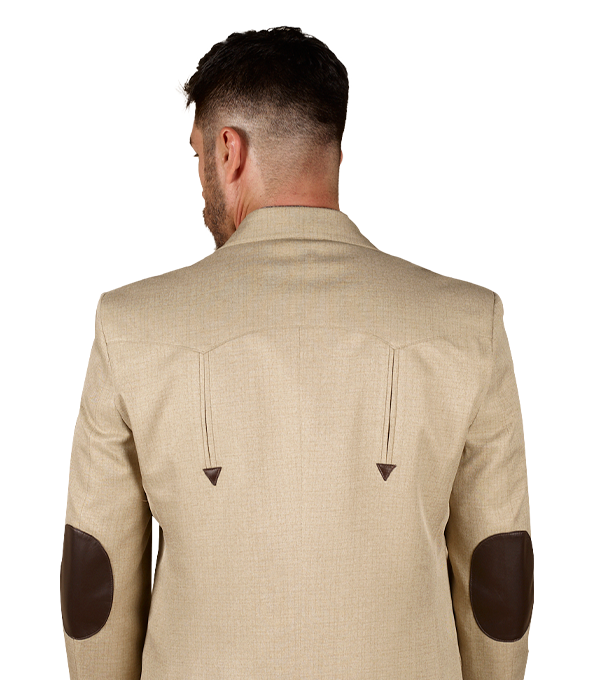 SACO VAQUERO DE CABALLERO TELA TOLEDO CAMEL DOBLE ABERTURA CON CODERAS 100% PIEL