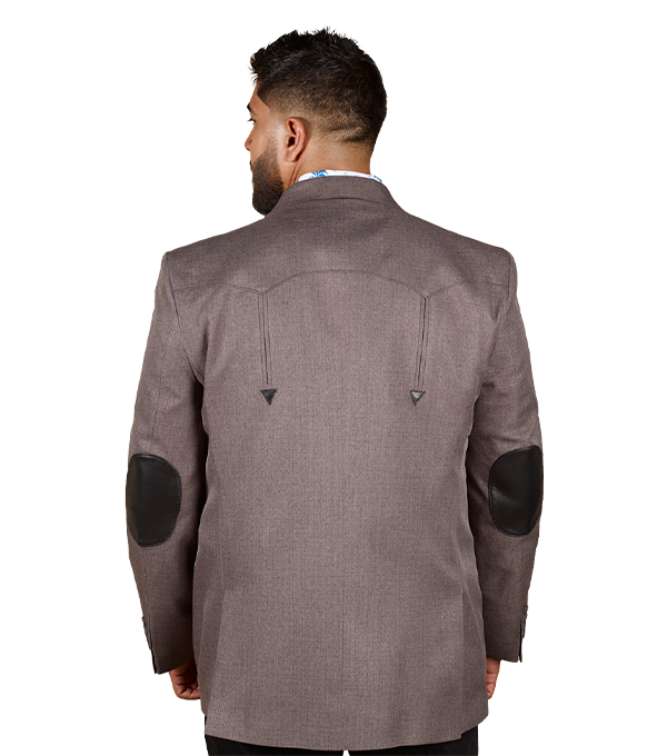SACO VAQUERO DE CABALLERO TELA TOLEDO GRIS DOBLE ABERTURA CON CODERAS 100% PIEL