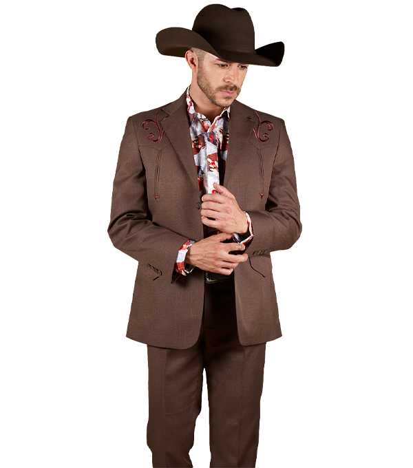 TRAJE VAQUERO DE CABALLERO TELA TOLEDO CAFE BORDADO CESAR